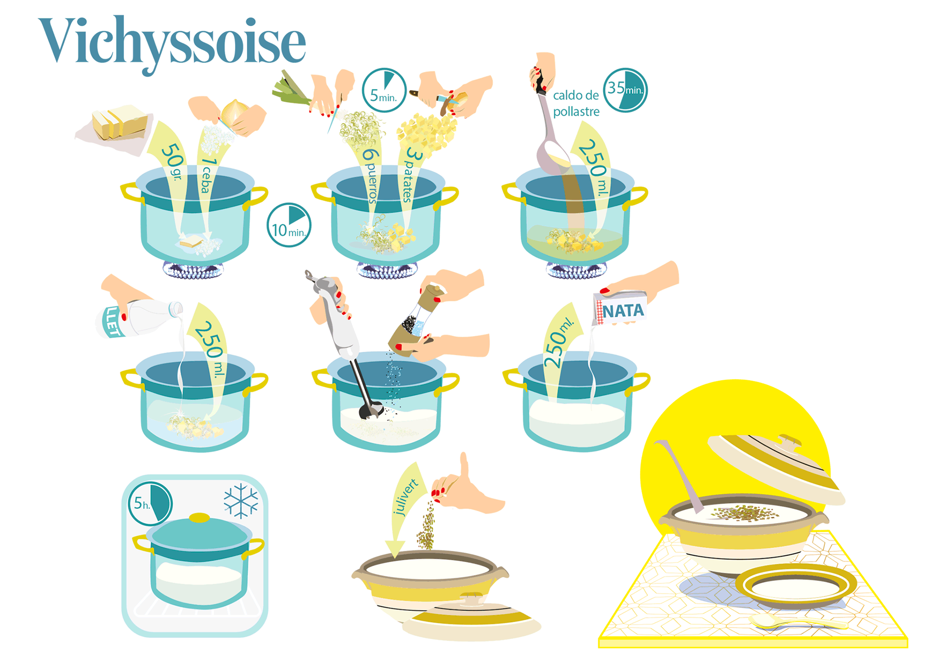consists of visual recipes from popular plates made with the mínimum of text, intended for a map that an international public will see.